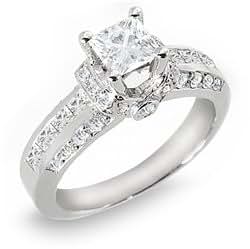 Diamond engagement ring d vs1 3 carat princess square 14k white gold split shank.