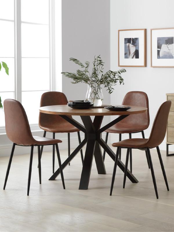 Find the perfect dining table and chairs combo with our rundown of some unique and chic pairings, plus tips for getting the details right. Extendable dining room table round dinning table modern dining table contemporary dining room sets elegant dining room dining room design hans wegner arne jacobsen danish modern furniture. Mahogany finish embodies well the classic spirit, reviving the regency. Modern round kitchen table and 4 chairs set. 5 piece dining room furniture set, dining table and chairs, tempered glass table and 4pcs faux leather dinning chairs.